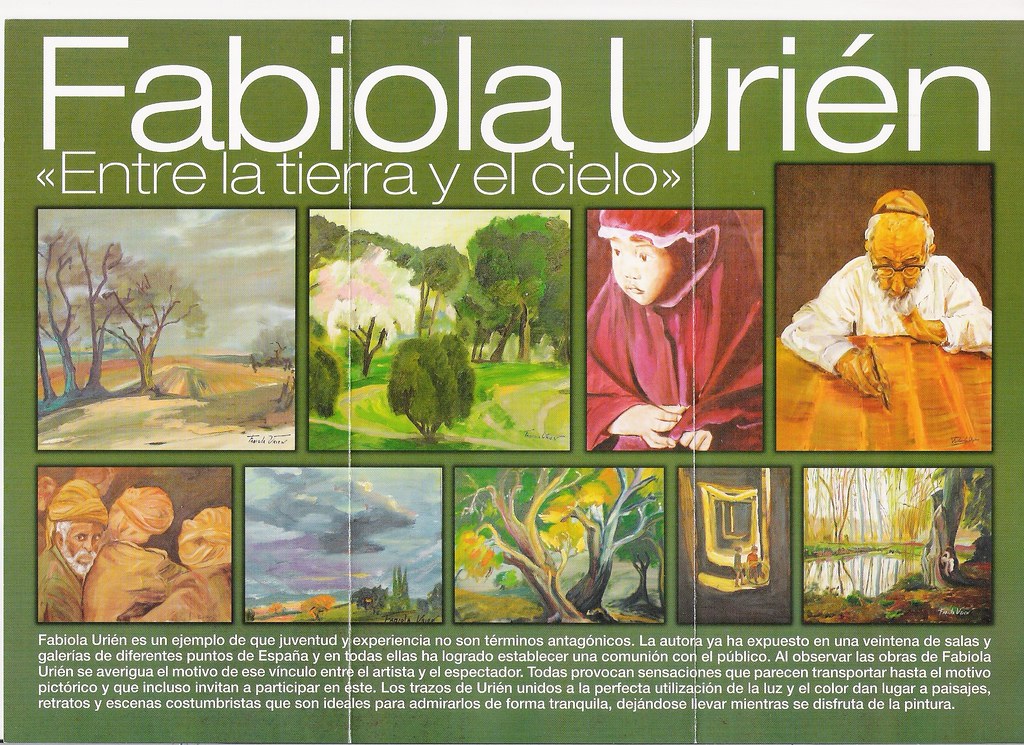 Se trata de una muestra de pintura de la artista Fabiola Urién, nacida en Burgos, quien define su obra como “totalmente libre. Soy autodidacta y no he tenido ni profesores ni escuelas”. Su afición, hoy convertida en profesión, comenzó a los nueve años, y desde entonces ha realizado más de una veintena de exposiciones, por distintas galerías y salas de arte de España.